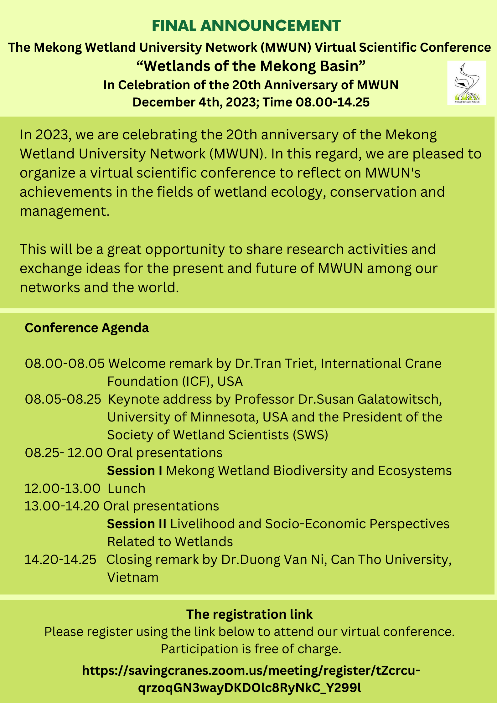 The Mekong Wetland University Network (MWUN) Virtual Scientific Conference